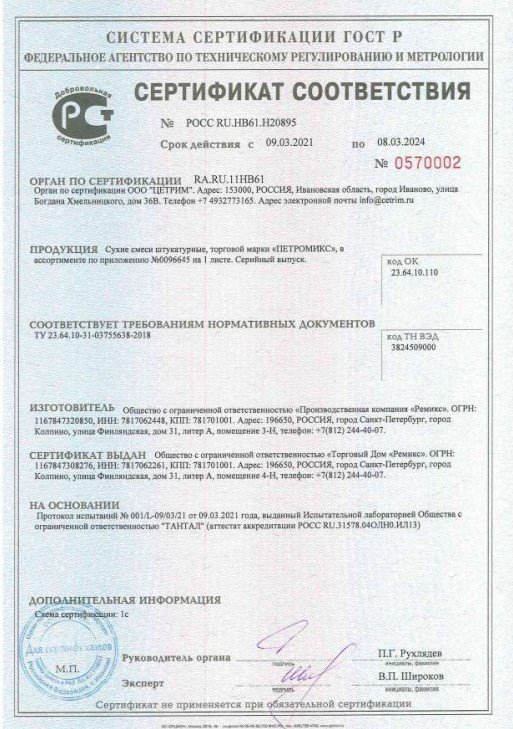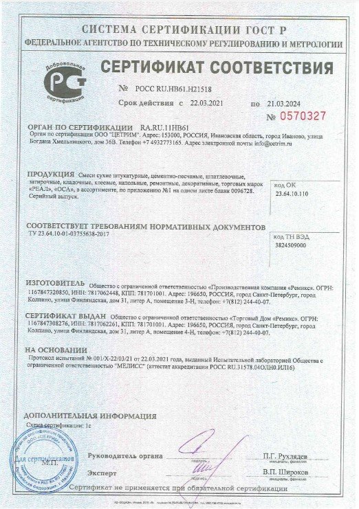 Продажа сухих смесей в Копорье